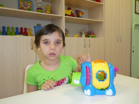Ева - активная и очень добрая девочка. Легко и быстро идет на контакт с детьми и взрослыми. Эмоционально реагирует на общение с ней окружающих. В настроении преобладают положительные эмоции. Спокойно реагирует на новые предметы и игрушки. Любит игры с мячом, а также слушать музыку и танцевать под нее.
