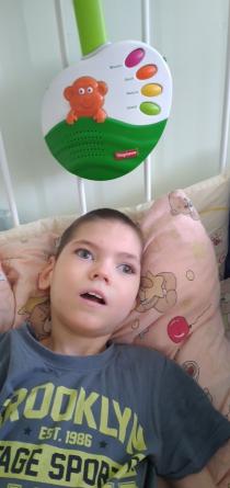 Михаил - спокойный мальчик. Удерживает в поле зрения привлекший внимание предмет, следит за движущейся игрушкой или взрослым. Поворачивает голову в сторону голоса взрослого. Эмоционально реагирует на прикосновения, любит тактильный контакт, поглаживания. Берет в руки игрушки, раскачивает ими, рассматривает. Может поворачиваться на бок, на живот. Мальчику требуется постоянная помощь взрослого.