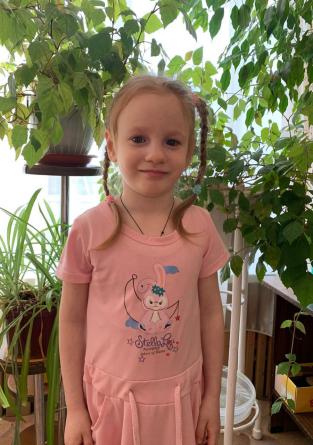 Анастасия - добрая, спокойная девочка. Быстро идет на контакт с детьми и взрослыми. Настя любит играть в куклы и кукольный театр. С удовольствием слушает детские сказки. Настя любит наряжаться в красивые платья, делать себе прически. С удовольствием принимает участие в мероприятиях, проводимых в учреждении.