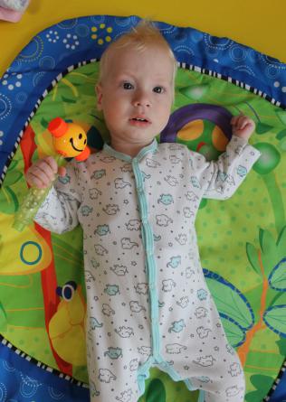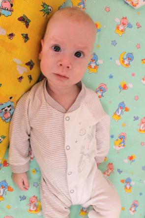 Макар - спокойный мальчик. Любит общение со взрослыми, отвечает улыбкой. Фиксирует взгляд на лице взрослого, прослеживает за движущейся игрушкой. Прислушивается к речи взрослого, реагирует на громкие звуки.